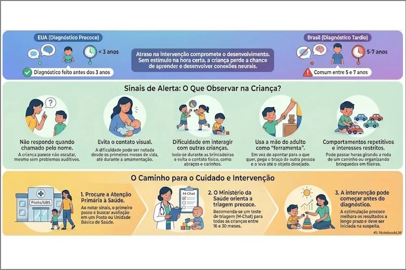O contraste é alarmante. Enquanto em países como os Estados Unidos o diagnóstico é frequentemente feito antes dos 3 anos, um estudo mostrou que no Brasil o transtorno só é identificado quando a criança já tem entre 5 e 7 anos.